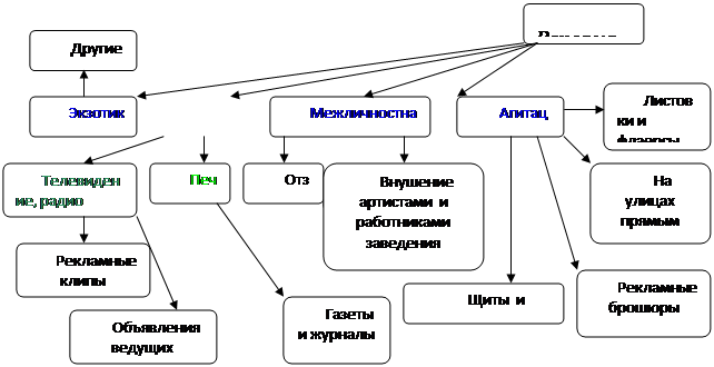 Реклама в ресторанном бизнесе в основном схожа с рекламой любой другой продукции или товара и призвана привлекать внимание потенциальных клиентов. При этом могут использоваться различные средства рекламы: ролики на телевидении, рекламные блоки в печатных изданиях, листовки, флаеры и другие (рисунок 2).[6]